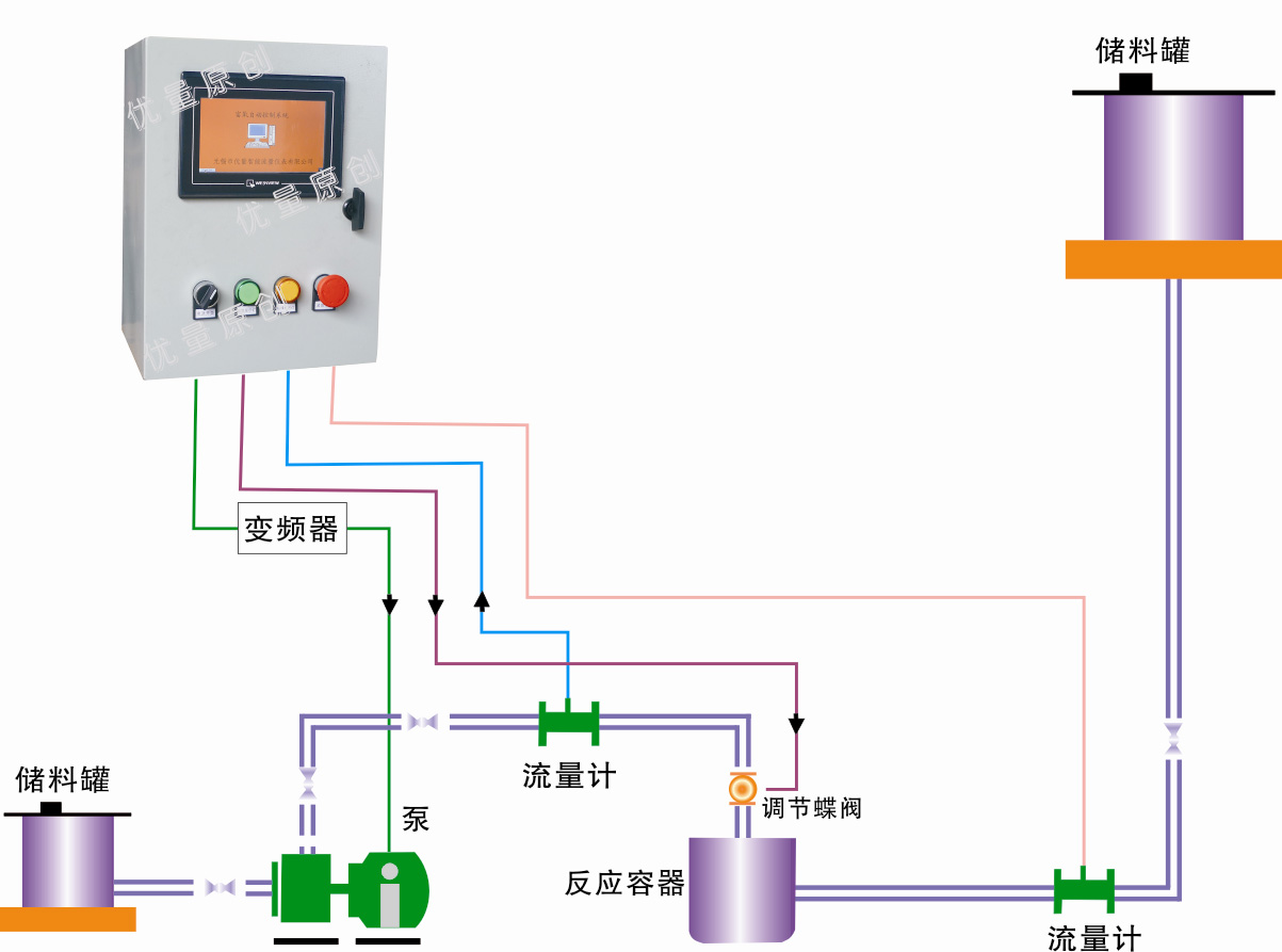 流量控制:西門子PLC+觸摸屏設定加料的數量,進行流量比例反應。電話: 0510-82026888 83118288 |