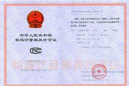 中華人民共和國計量器具生產許可證 蘇制02000305號