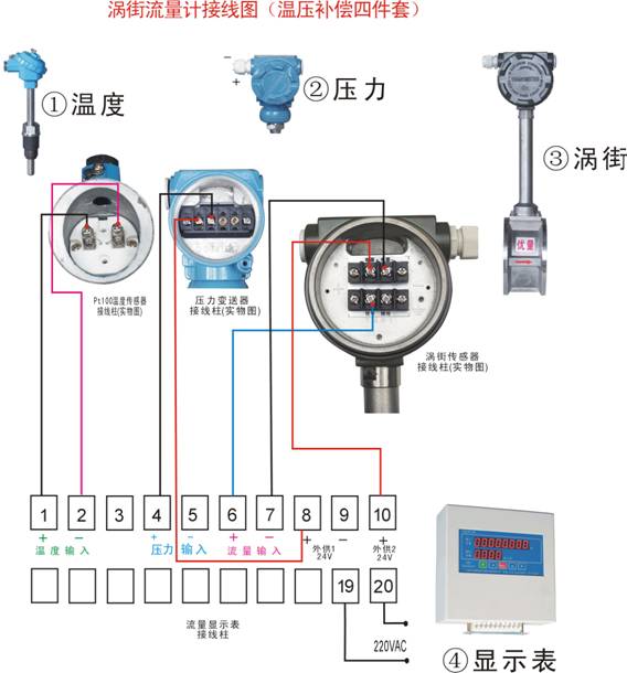 無錫優量公司 四件套蒸汽流量計 實物接線圖 |